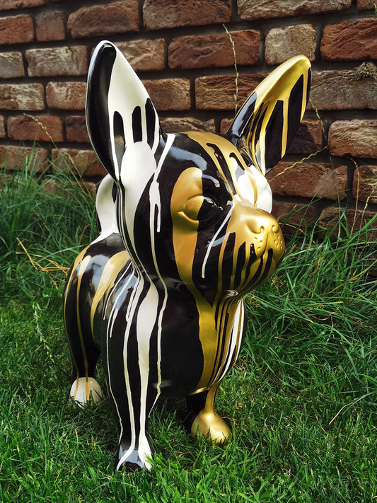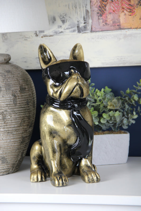 Französische Bulldogge mit Brille und Krawatte gold-antik aus Kunstharz - 30cm