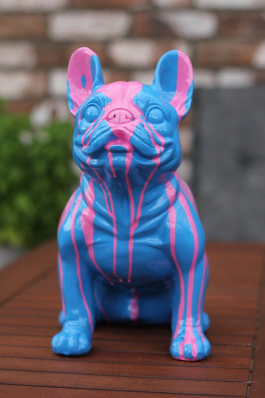 Französische Bulldogge blau mit pinken Akzenten - 32cm