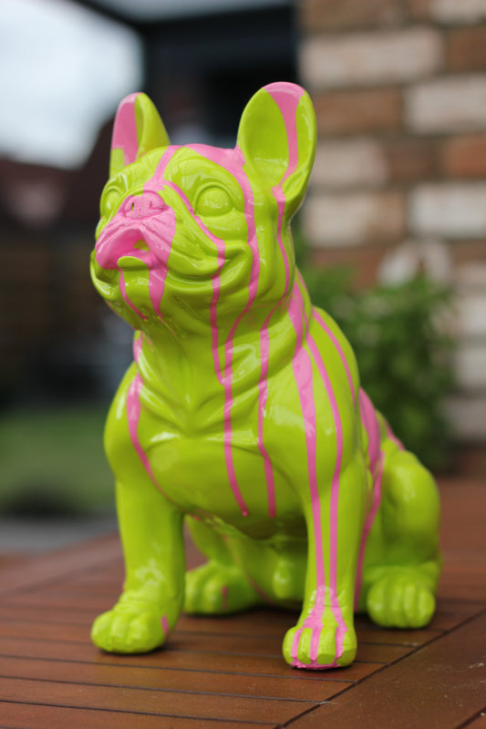 Französische Bulldogge grün mit pinken Akzenten - 32cm
