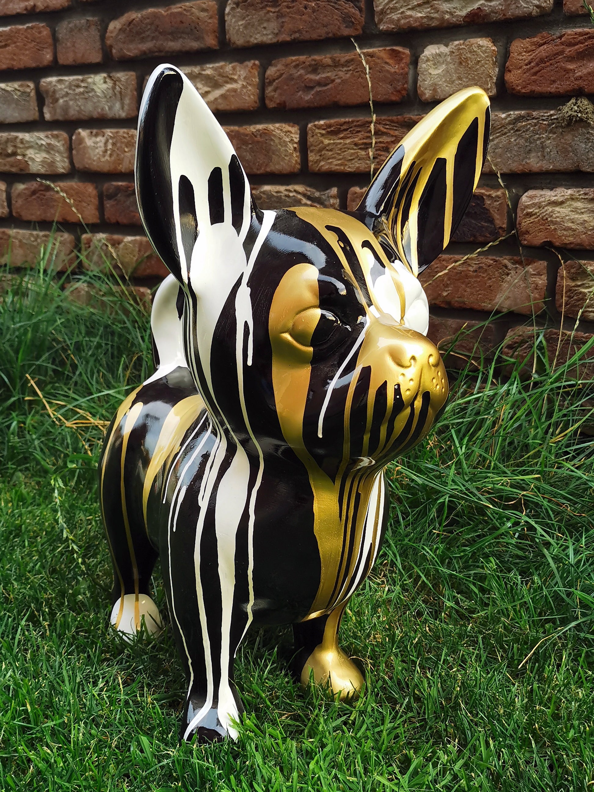Chihuahua weiß-gold aus Kunstharz - 52cm