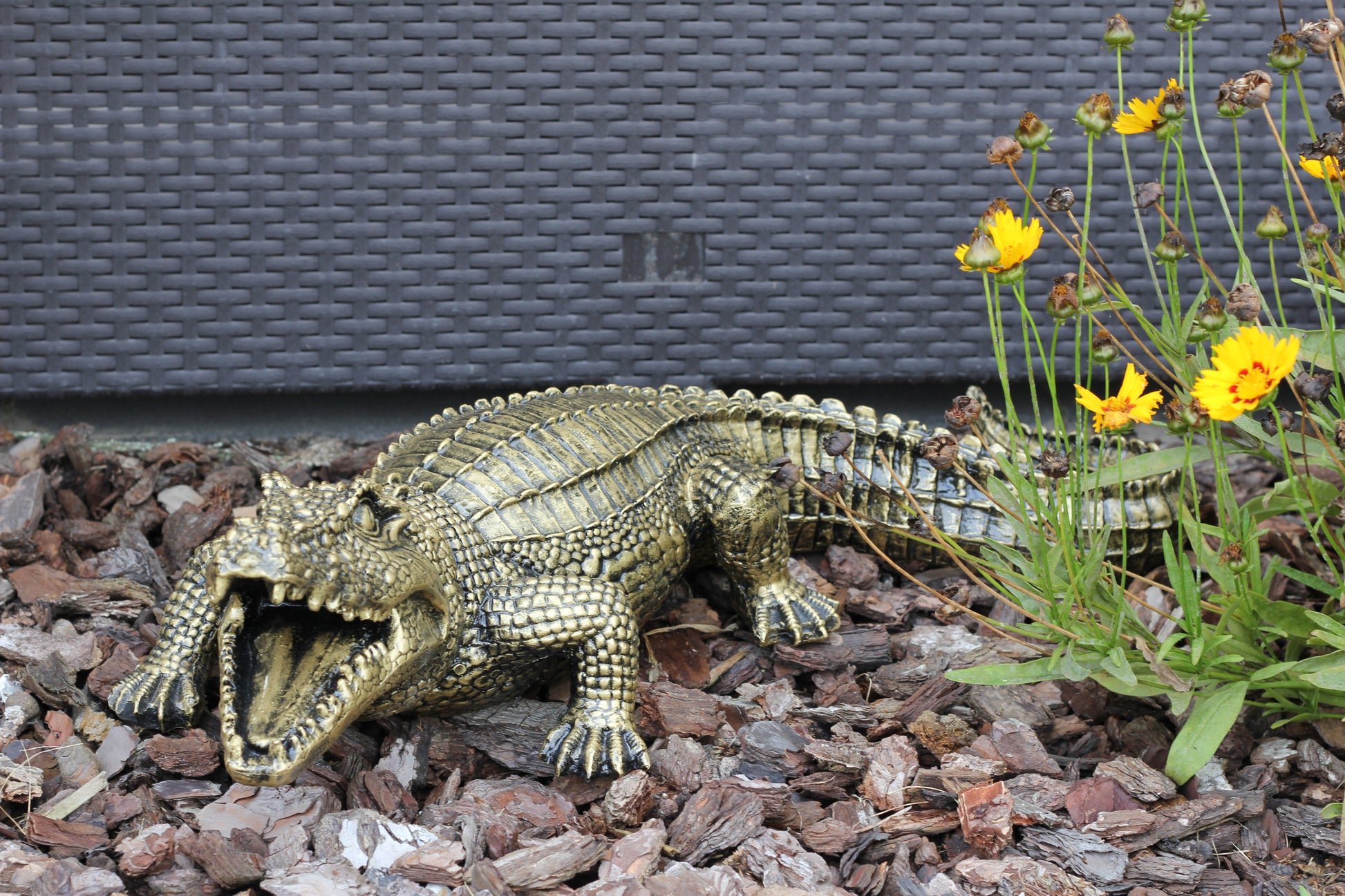 Krokodil gold-antik aus Kunstharz - 58cm lang