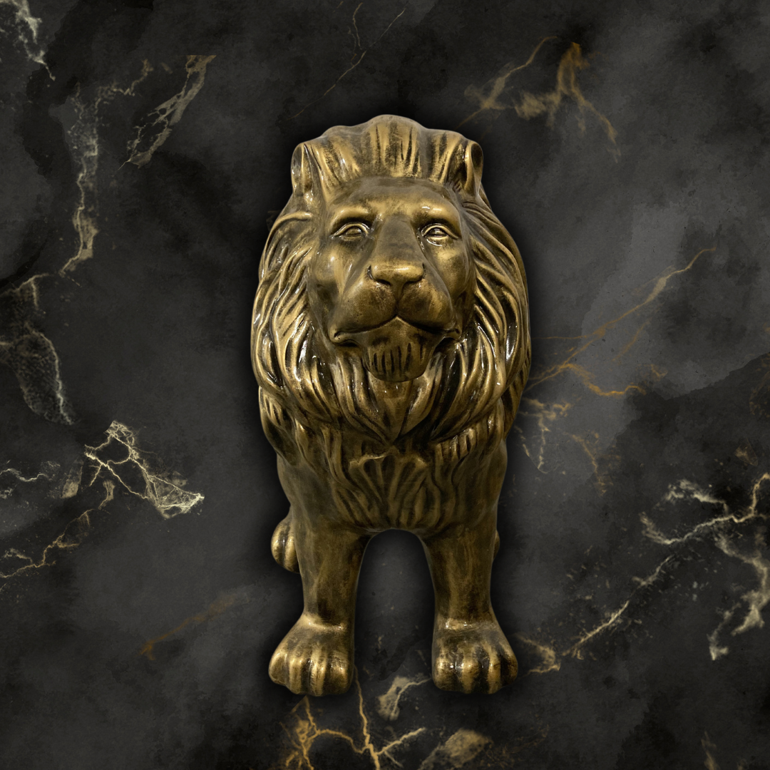 Löwe sitzend gold-antik aus Kunstharz - 70cm